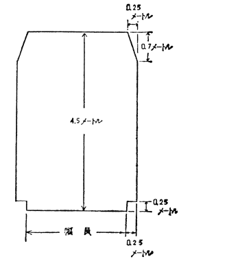 第7条 堤防の天端幅は、堤防の高さと堤内地盤高との差が0.6メートル未満である区間を除き、3メートル以上とするものとする。