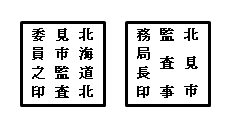 | 北海道北見市監査委員之印 | てん書 | 正方形 | 20ミリメートル | 1個 |
